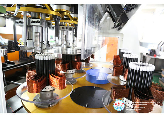 Máy này có 8 trạm quanh co, tất cả bốn đầu sẽ quấn quanh nhau. Máy cuộn cuộn dây stato